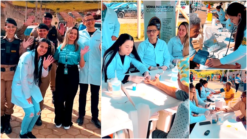 No dia 13 de junho, alunos dos cursos de Enfermagem e Medicina do UNIFAGOC participaram da Aciso (Ação Cívico-Social), promovida pela Polícia Militar de Minas Gerais no bairro Solar, em Ubá.