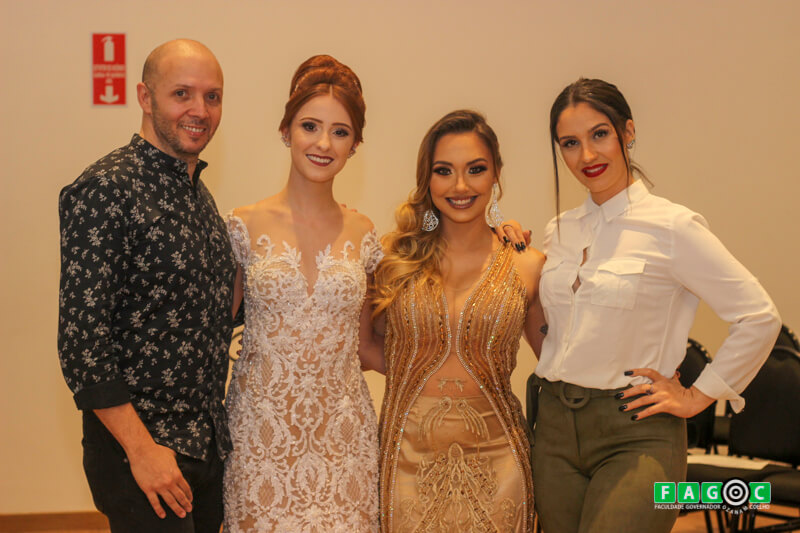 Na foto, o cabeleireiro Paulinho Honoratto, ao lado da modelo e aluna de Estética e Cosmética Bianca Caneschi, a modelo Lara Colli e a maquiadora Bia Alves