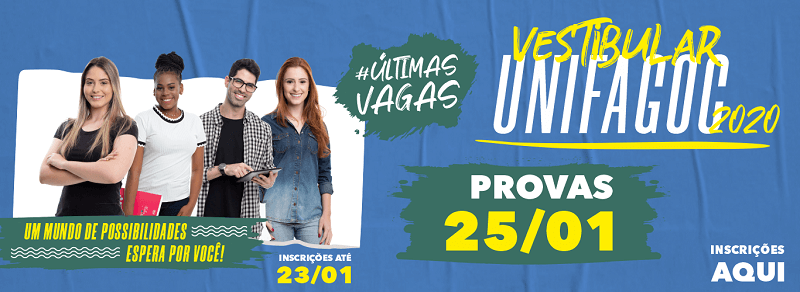 O Centro Universitário UNIFAGOC oferece mais uma chance para aqueles que querem ingressar no ensino superior. No próximo dia 25 (sábado) acontece a segunda chamada do Vestibular 2020. Confira o edital AQUI.