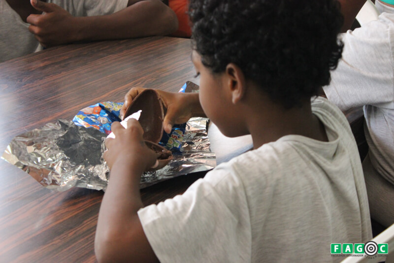 A campanha Páscoa Solidária Fagoc mobilizou alunos, colaboradores e até pessoas da comunidade e ultrapassou a meta prevista com a arrecadação de mais de 40 barras de chocolate. As barras foram transformadas em ovos de páscoa que foram entregues a mais de 600 crianças carentes de Ubá.
