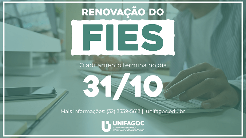 O aditamento do Fundo de Financiamento Estudantil (FIES) para o segundo semestre de 2019 está disponível até o dia 31 de outubro (quinta-feira). Os alunos do UNIFAGOC que possuem o programa precisam acessar o Sistema Informatizado do FIES (SisFIES) para garantir a continuidade do benefício.