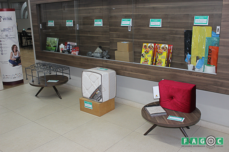 Cada grupo de estudantes escolheu uma empresa para simularem a atuação de um consultor, a fim de desenvolverem um planejamento estratégico. E para essa exposição, os alunos tiveram que trazer produtos ou matéria-prima que representem o negócio estudado.