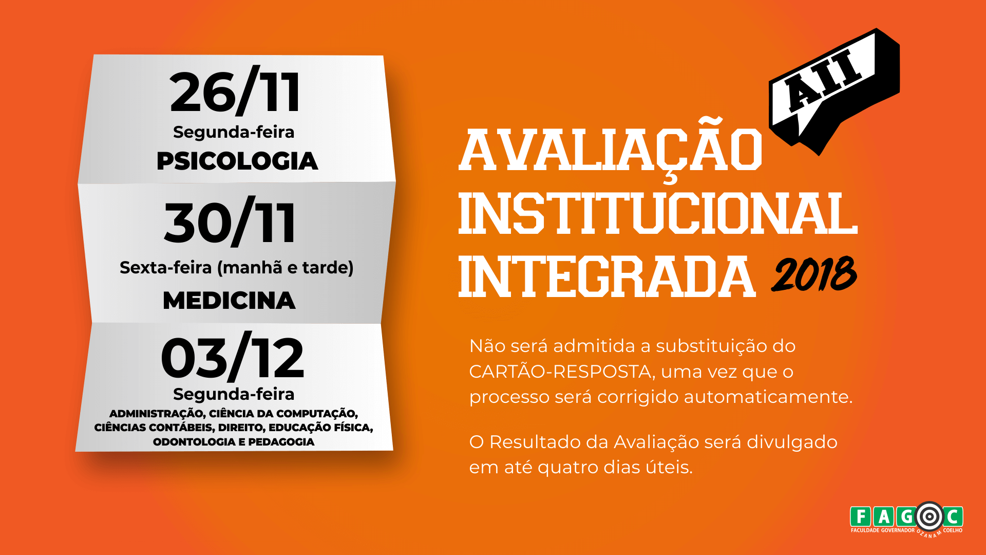 A Fagoc dá início ao calendário de provas da Avaliação Institucional Integrada (AII) do segundo semestre de 2018. O exame que tem por objetivo medir a qualidade do aprendizado e o desempenho dos estudantes ao longo do período.