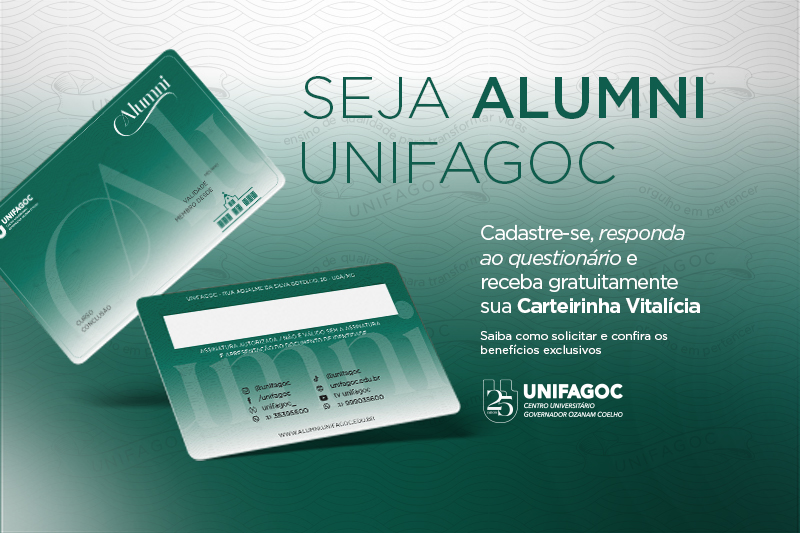 O processo é simples, rápido e totalmente gratuito! Basta acessar a página do Alumni UNIFAGOC, preencher seus dados e garantir sua carteirinha.