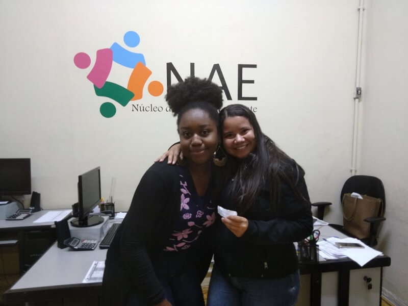 Na foto, à esquerda a ganhadora da bolsa de intercâmbio Ariane dos Santos Miranda, ao lado da representante do NAE Bárbara Ariane de Lemos