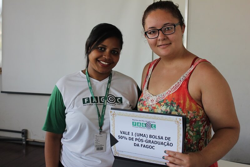 Na foto, a colaboradora do Núcleo de Pós-graduação Lidiana Brum e a ganhadora, Cristiane Freixo.