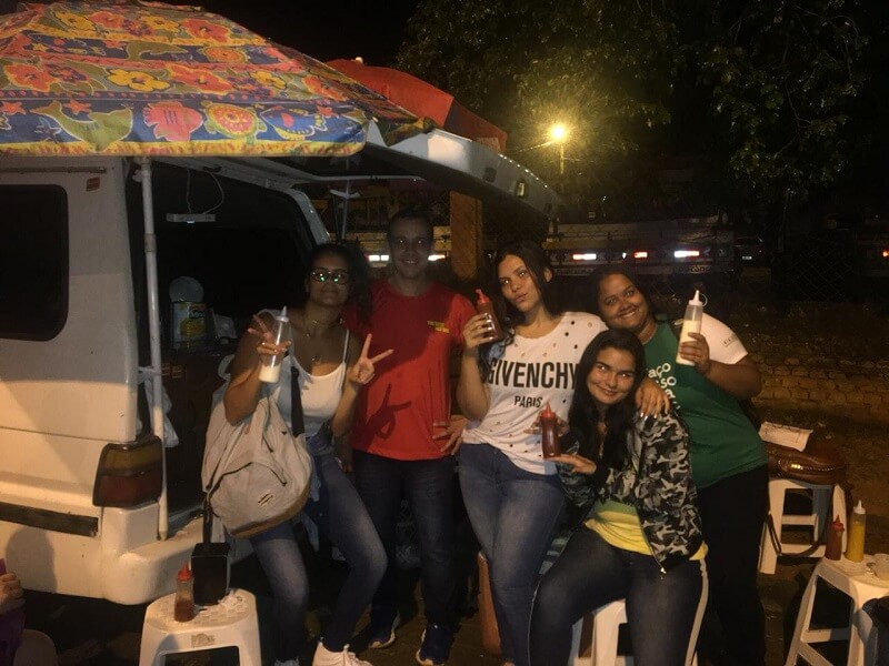 As alunas Ana Flávia Silva Ramos, Ana Júlia Ciotti Pereira, Giovana Guimarães Ferreira e Lara Ferrete Martins logo notaram o Cristhian, que vende cachorro-quente próximo à faculdade. O lanche faz tanto sucesso que diariamente é possível ver o carrinho rodeado de clientes.