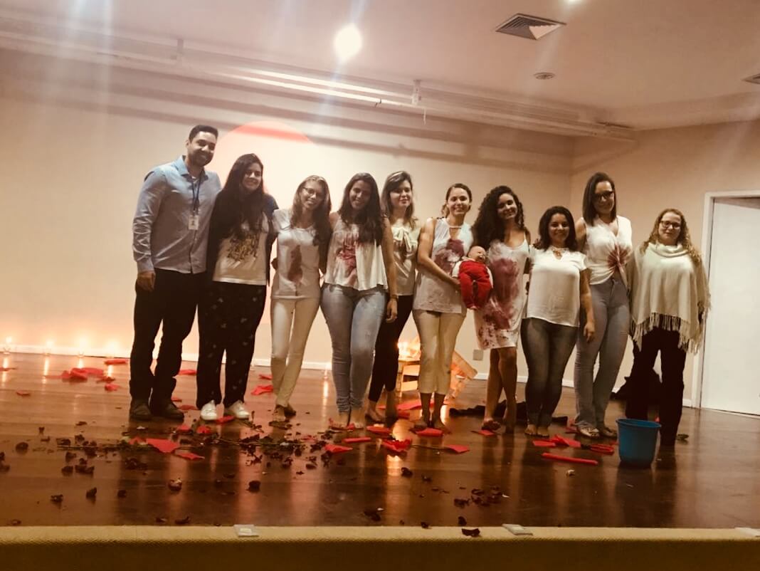Na foto: o professor Bruno Motta, as alunas Letícia Cristina, Emília Mendes, Rhaissa Braga, Gabriela Souza, Karla Dutra, Gabriela Donadoni, Ivani Silva, Ana Carolina Ferreira e a coordenadora de Psicologia da Faculdade Machado Sobrinho Daniele Rangel