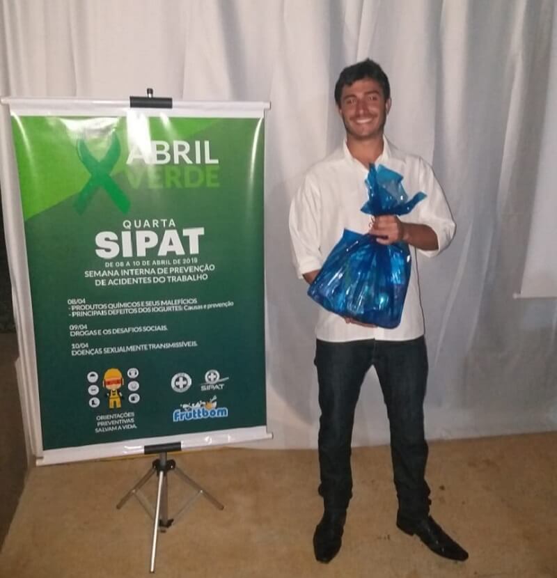 O aluno do décimo período do curso de Medicina da Fagoc Braian Campos foi convidado para ministrar uma palestra na Semana Interna de Prevenção de Acidentes de Trabalho (SIPAT) da empresa Fruttbom de Tocantins MG.
