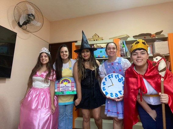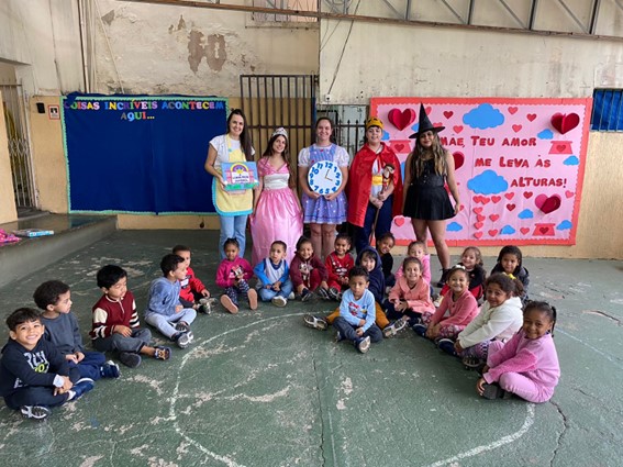 O grupo 1 foi composto pelas alunas: Lara Parma, Dyana Paiva, Isabelle Talmas, Bruna Nogueira e Alice da Silva. Elas desenvolveram as atividades nas turmas do maternal 3 e 2º período do turno da manhã. No maternal 3, elas prepararam a história “A linda rosa juvenil”, levando encanto e magia para os pequenos.