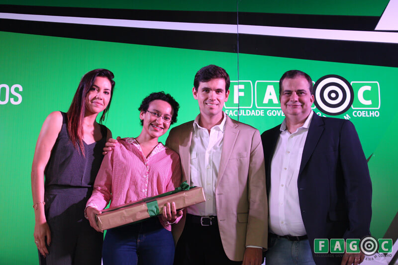 Na foto, a estudante Mariana Giffone recebe o prêmio de seus pais