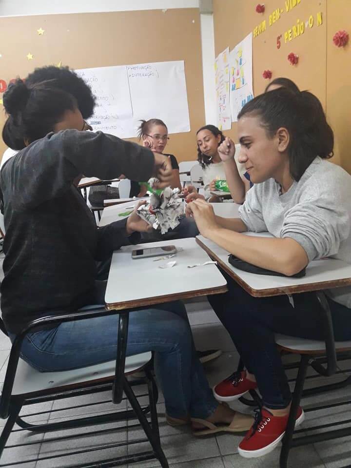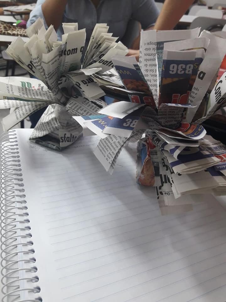 O objetivo da atividade foi a exploração de objetos recicláveis e a criatividade, que os futuros pedagogos poderão passar para seus alunos.