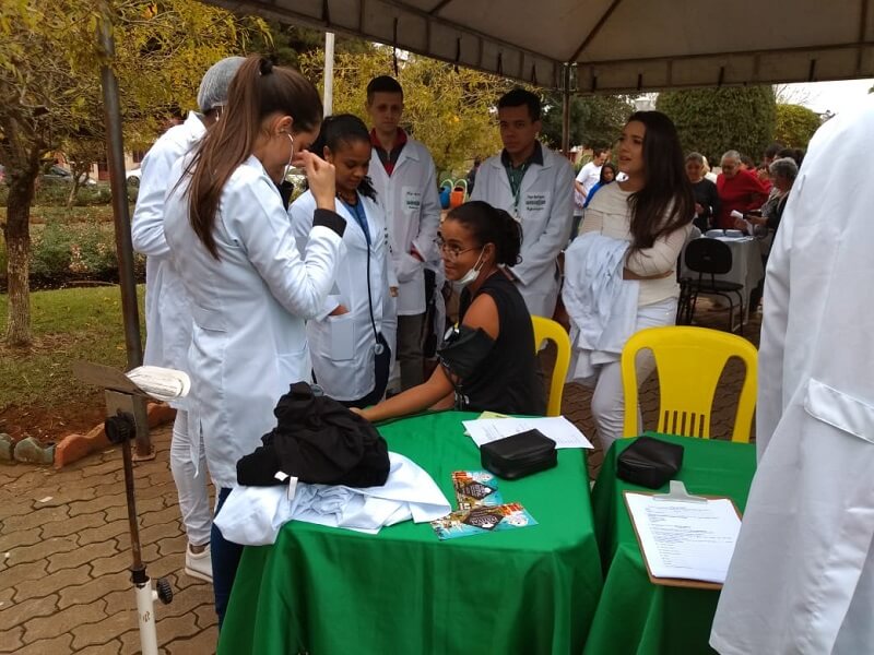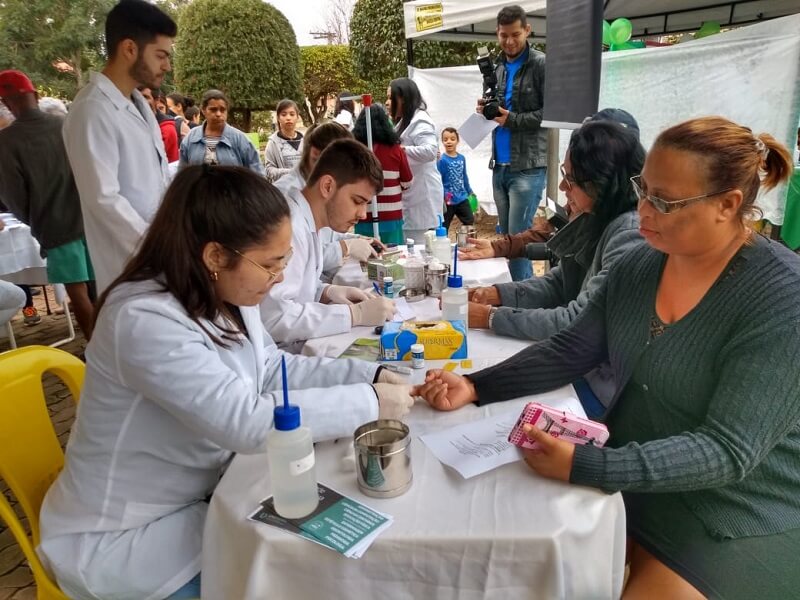 Glicemia capilar, aferição de pressão, hanseníase e tuberculose e antropometria com avaliação de risco cardiovascula foram atividades realizadas pelos alunos e professores de Enfermagem e Medicina.
