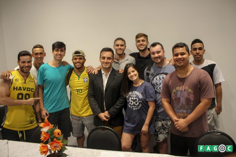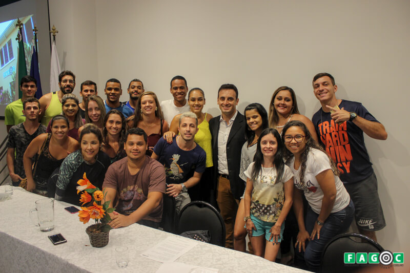 Ao final, alunos e professores de Educação Física da Fagoc fotografaram com o preletor e relembraram o tempo em que ele trabalhou na instituição. “Já estávamos com saudades… Obrigada por nos repassar conhecimento de uma forma tão bacana. Você com certeza é uma das pessoas que me inspiram!”, agradeceu a aluna Francyelle Gomes.