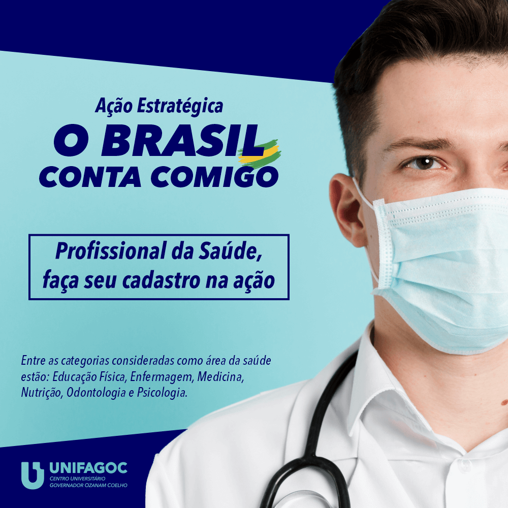 O Ministério da Saúde divulgou, na semana passada, a portaria Nº 639 que dispõe sobre o projeto "O Brasil Conta Comigo – Profissionais da Saúde", que tem como foco o cadastramento e a capacitação de profissionais da área de saúde, para o enfrentamento à pandemia do coronavírus (COVID-19).