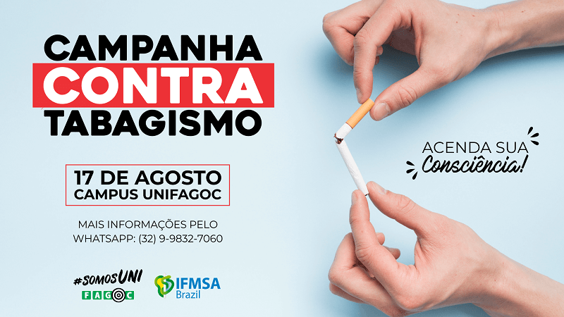 Os alunos do curso de Medicina da UniFagoc em parceria com a Federação Internacional das Associações dos Estudantes de Medicina do Brasil (IFMSA) promovem a Campanha Contra o Tabagismo. A ação será realizada por meio de reuniões, que acontecerão aos sábados, no campus do Centro Universitário, com início no dia 17 de agosto.