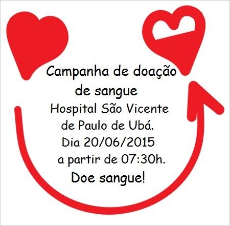 Neste sábado (20), o Hemominas realiza campanha de doação de sangue em Ubá. A iniciativa acontece no Hospital São Vicente de Paulo a partir das 7h30. É necessário apresentar um documento de identificação com foto para participar da doação. A captação será feita no portão de exames do Hospital.