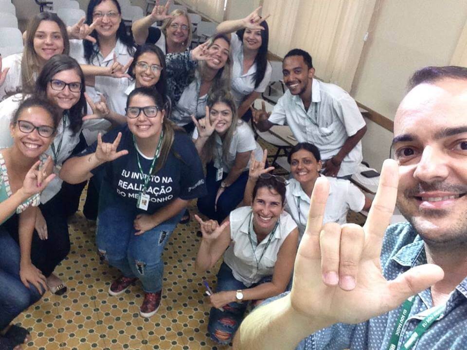 Ao final da capacitação, os colaboradores presentes tiveram uma pequena demonstração de alguns sinais básicos de cumprimentos na Língua Brasileira de Sinais (LIBRAS).