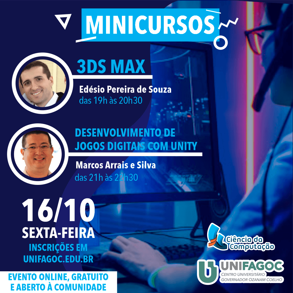 A graduação de Ciência da Computação do UNIFAGOC promove minicursos, nesta sexta-feira (16) a partir das 19h, focados na área de desenvolvimento de jogos digitais. A iniciativa é totalmente gratuita e online.