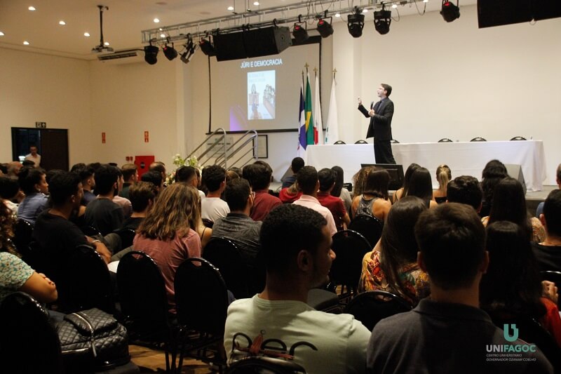 A programação foi iniciada com a palestra “A Etiqueta Profissional e a Oratória no Meio Jurídico”, ministrada pela secretária executiva Brenda Riguette Reis. Na sequência, o palco da Aula Magna recebeu o promotor de justiça, doutor Vinícius Bigonha que falou sobre “A Comunicação no Tribunal do Júri”.