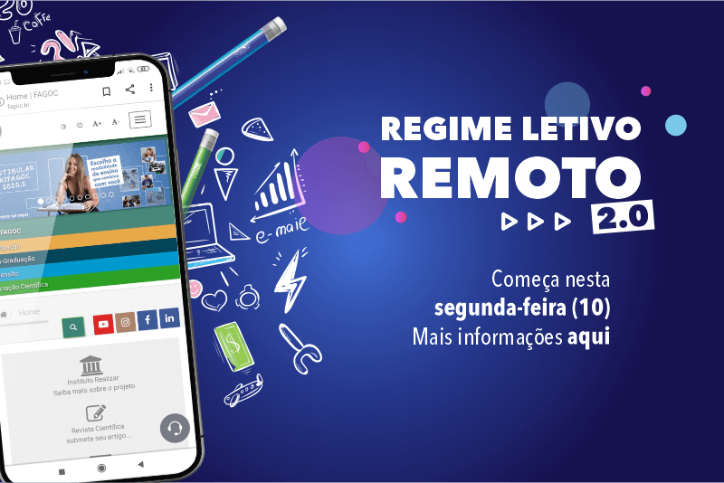 O Centro Universitário UNIFAGOC dará início ao segundo semestre letivo remoto na próxima segunda-feira (10). A fim de manter a continuidade da prestação do serviço educacional com a qualidade e inovação que os alunos já conhecem e em conformidade com as normas do Ministério da Educação (MEC), a Instituição anuncia novidades para o Regime Letivo Remoto.