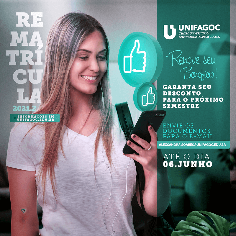 Nesses casos, os contemplados devem enviar os documentos necessários até o dia 06 de junho para o email alexsandra.soares@unifagoc.edu.br.