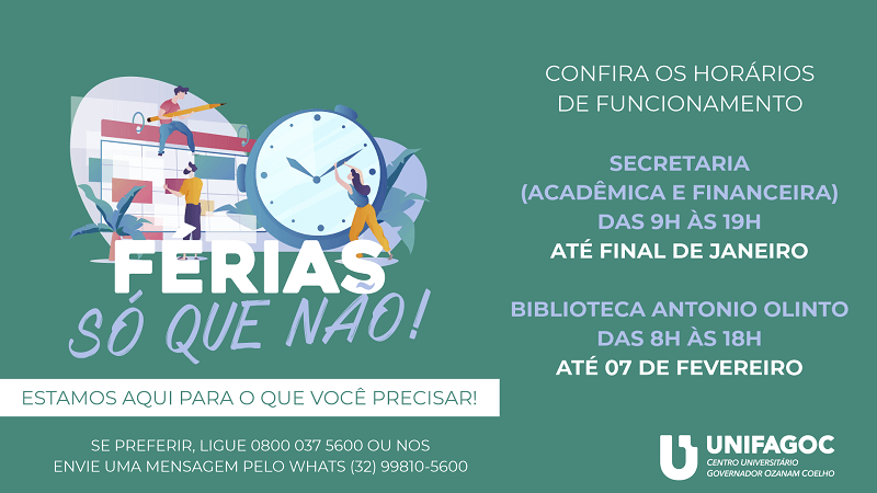Durante as férias, alguns setores do UNIFAGOC entram em recesso, enquanto outros trabalham em horário diferente.