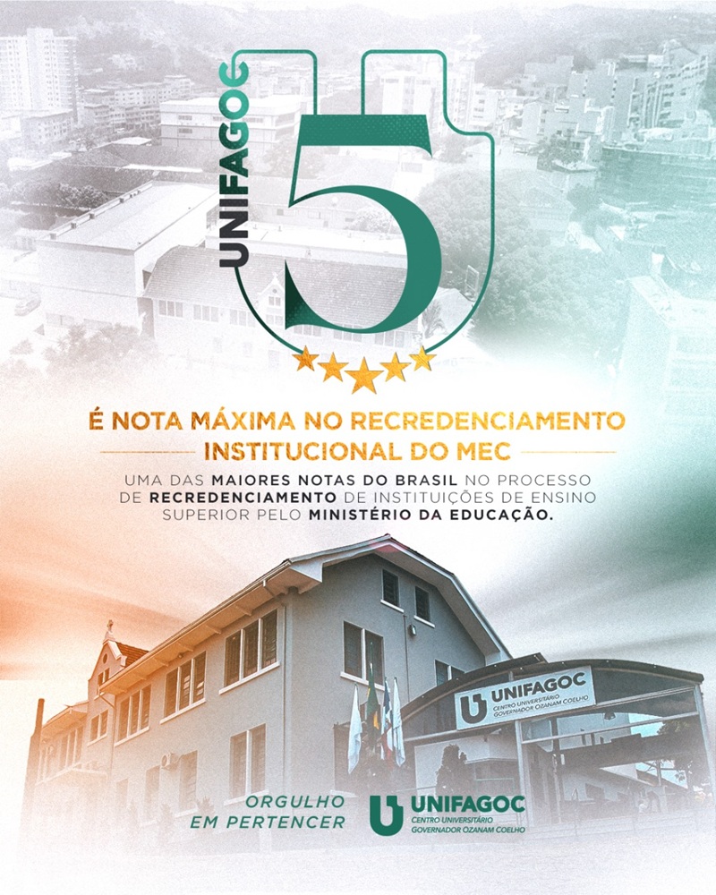 O Centro Universitário UNIFAGOC acaba de entrar para a história da educação superior brasileira com uma conquista extraordinária. No processo de Renovação do Recredenciamento Institucional junto ao Ministério da Educação (MEC), realizado entre os dias 12 e 14 de fevereiro, a Instituição atingiu a NOTA MÁXIMA, consolidando-se entre as melhores do país.