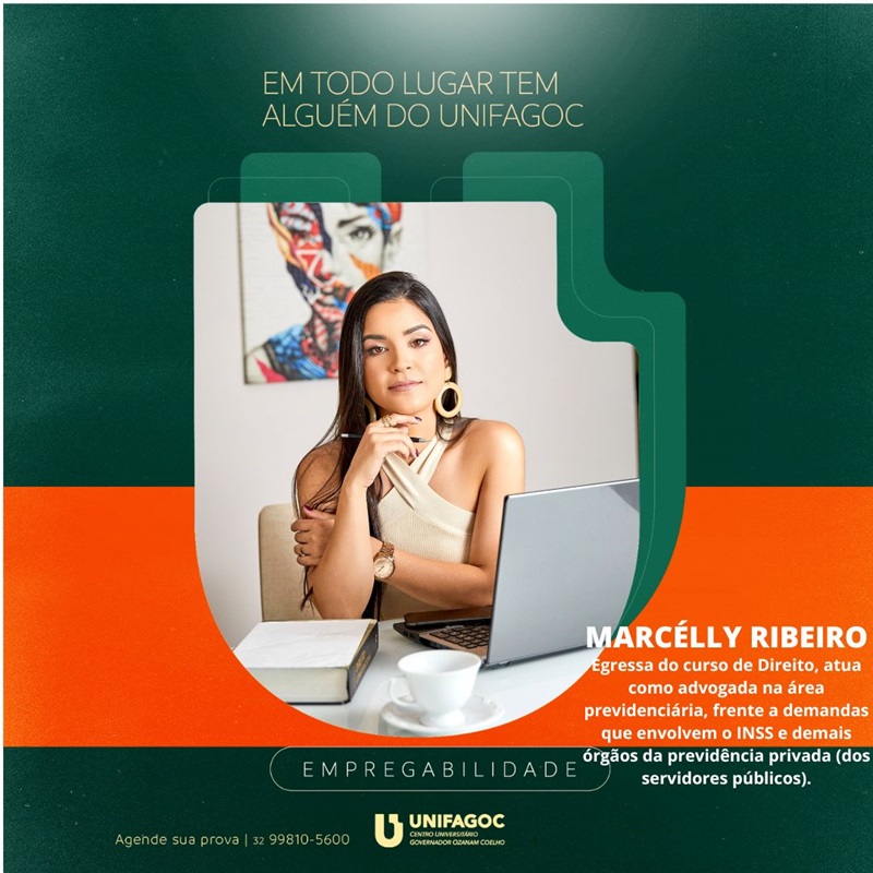 – Drielly Faria de Paula Leão, egressa do curso de Direito, atua como advogada na área do direito previdenciário e em algumas causa cíveis.
