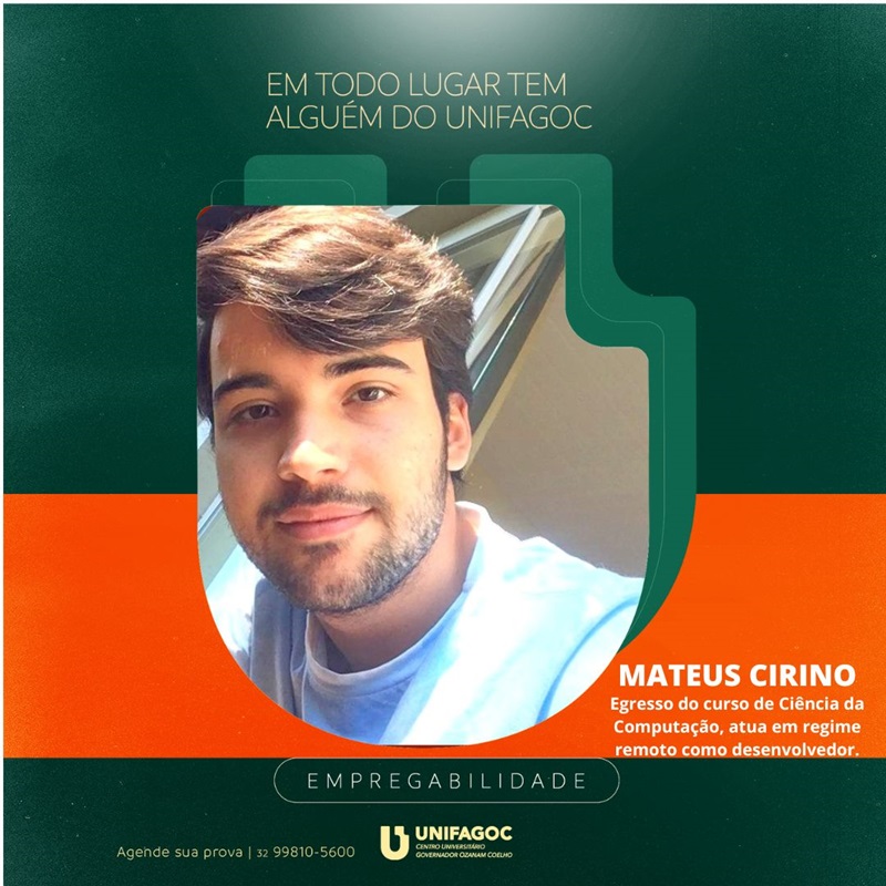 – Mateus Cirino Silva, egresso do curso de Ciência da Computação, atua em regime remoto como desenvolvedor. Conheça a história dele AQUI!