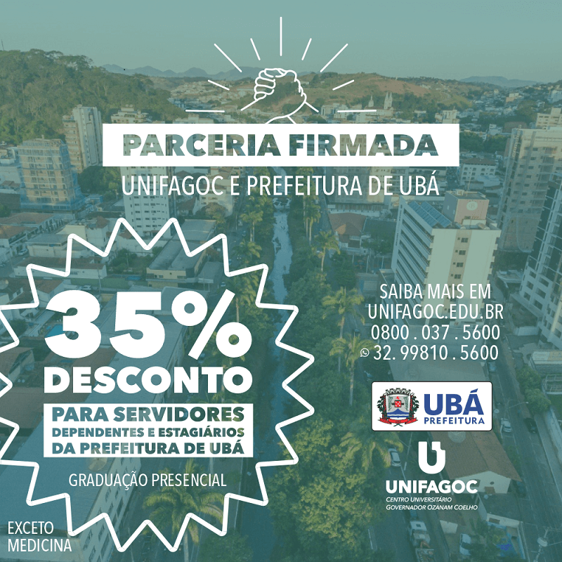 Estagiários, servidores e dependentes de servidores da Prefeitura Municipal de Ubá podem ganhar 35% de desconto na matrícula e nas mensalidades nos cursos de graduação do UNIFAGOC. O benefício é concedido graças a um convênio entre o Centro Universitário e o órgão administrativo municipal.