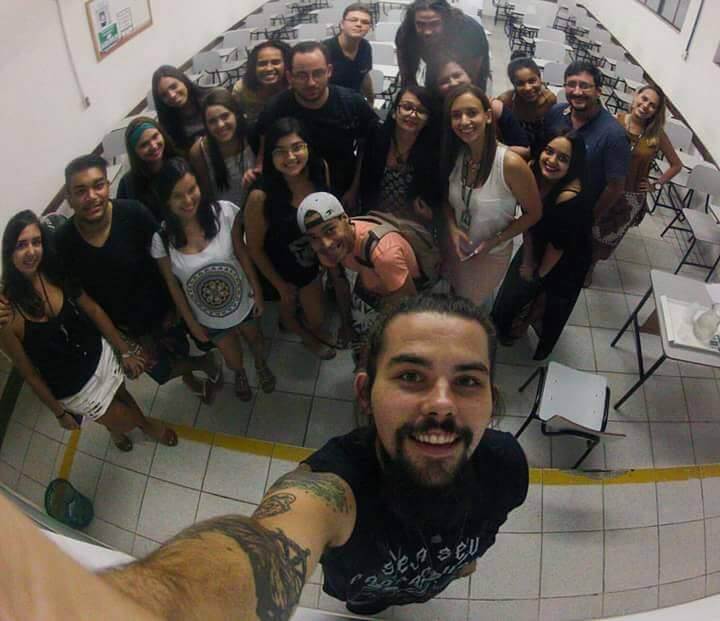 Alunos de jornalismo com o palestrante Hércules Rakauska na oficina de Fotografia de eventos.