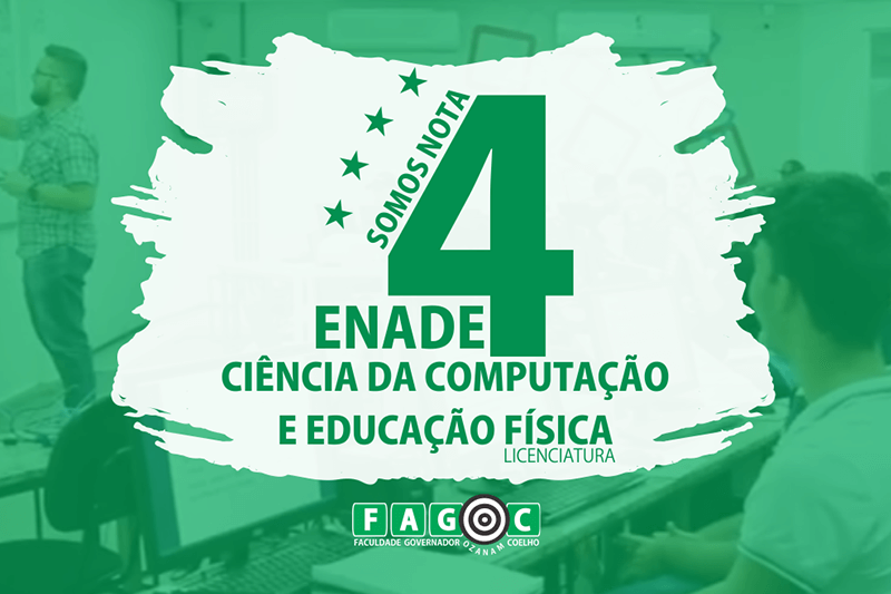 Os cursos de Ciência da Computação e Educação Física (Licenciatura) da Fagoc foram avaliados com conceito 4 no Exame Nacional de Desempenho de Estudantes (Enade). O resultado, divulgado no dia 08 de outubro, é referente a edição de 2017.