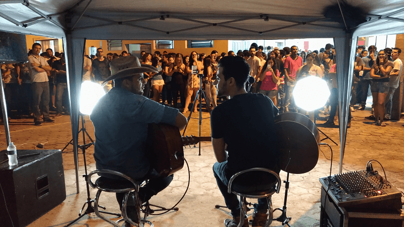 Dupla Dennis e Cristiano se apresentam no intervalo das aulas na Fagoc
