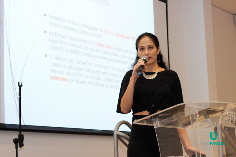 Em um primeiro momento, a advogada Débora Fernandes Pessoa Madeira ministrou uma palestra com o tema “Conciliação e Mediação de Conflitos Familiares”.
