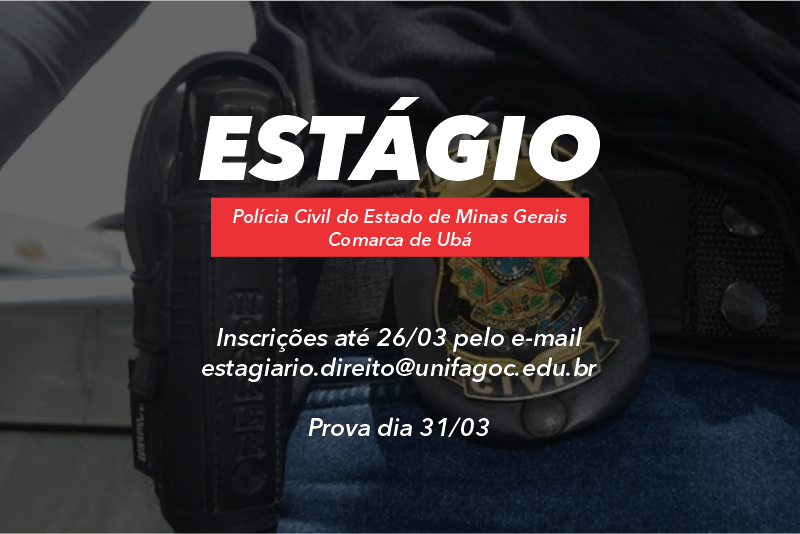 O UNIFAGOC, em convênio com a Policia Civil do Estado de Minas Gerais (PCMG), divulga seleção de estagiário de Direito para a prestação de serviços na PCMG – Comarca de Ubá e a formação de cadastro de reserva.