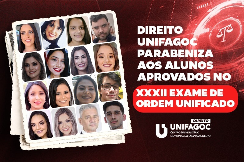 Em mais um ano, o UNIFAGOC comemora a aprovação dos alunos do curso de Direito no Exame da Ordem dos Advogados do Brasil (OAB). Na segunda fase da 32ª edição da prova, 86,20% dos estudantes do Centro Universitário foram aprovados.