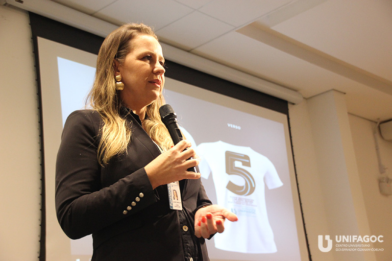 Registro da fala da diretora de Odontologia do UNIFAGOC, Liliane Carvalho, durante evento de anúncio da nota 5 da graduação no MEC.
