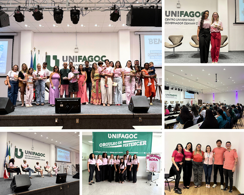 Os cursos de Enfermagem e Fisioterapia do UNIFAGOC promoveram uma ação de conscientização sobre o câncer de mama e de colo de útero, voltada aos colaboradores da instituição. O evento fez parte das atividades da campanha Outubro Rosa, movimento internacional que destaca a importância da prevenção e do diagnóstico precoce dessas doenças.