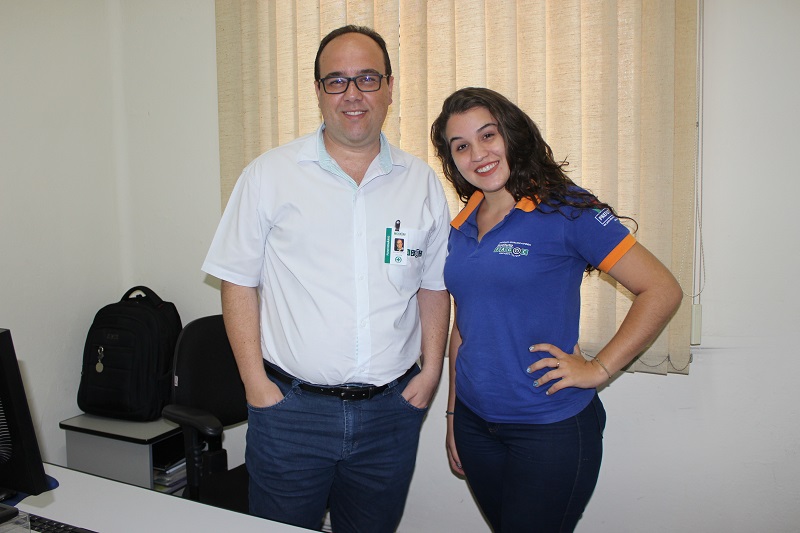 Supervisor de processos, Gustavo Farias, e a auxiliar mirim Marina Pires.