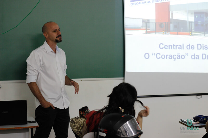 Ex-aluno do UNIFAGOC e coordenador da Drogaria Araújo palestra a alunos de Administração