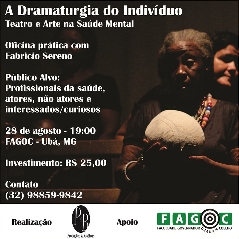 A programação se estende na terça-feira (28), quando o auditório recebe a oficina “A Dramaturgia do Indivíduo”, proposta pelo autor do livro. O workshop acontece das 19h às 21h, com valor de R$ 25 por participante.
