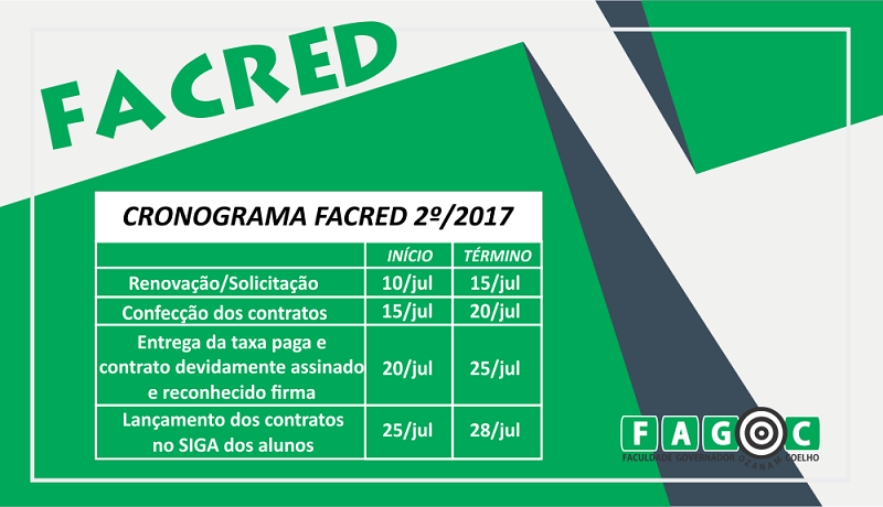 Fagoc divulga cronograma para solicitação e renovação do Facred