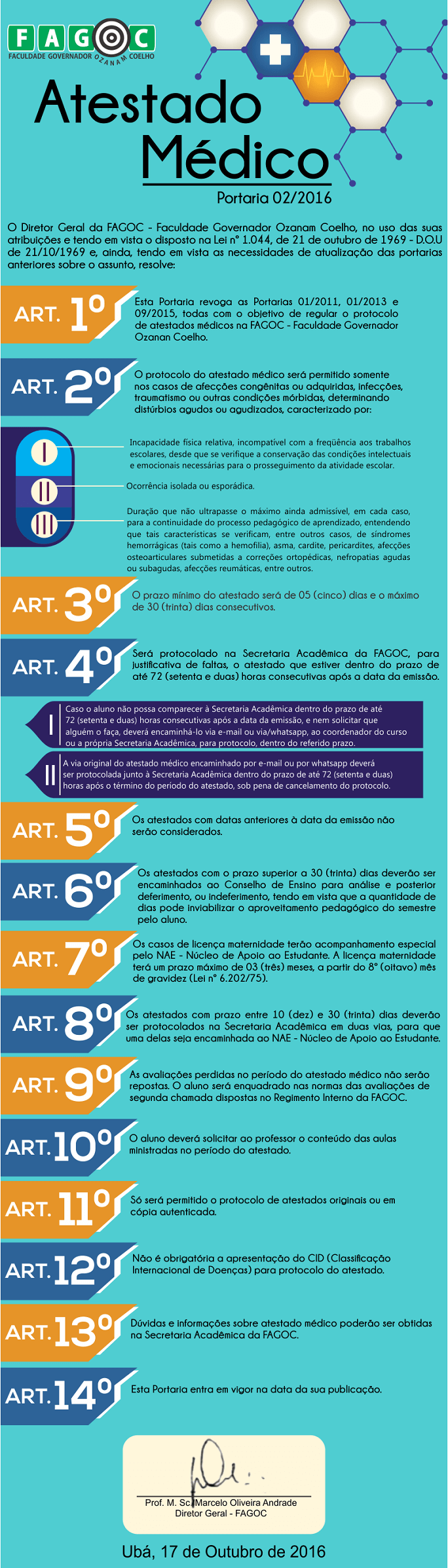 Confira todas as regras na Portaria 02/2016 – Atestado Médico.