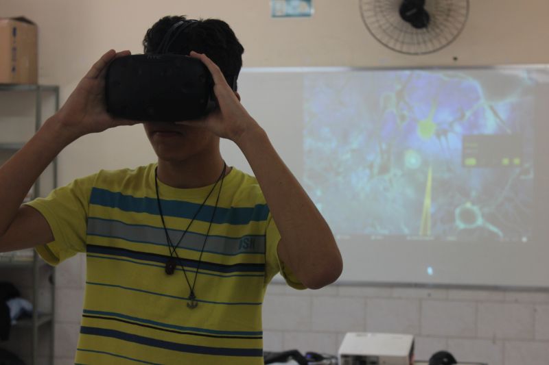 A outra novidade foi HTC Vive, um óculos que simula uma realidade virtual usado para jogos.