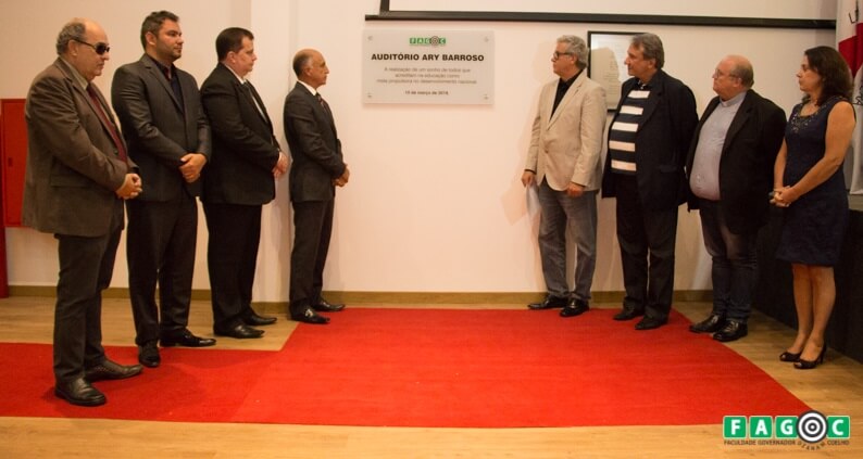 A Fagoc recebeu, no dia 10 de março, alunos, professores, colaboradores, autoridades e demais convidados para a solenidade de inauguração do seu novo auditório. O espaço, com capacidade para mais de 400 pessoas, homenageia o ubaense Ary Barroso, compositor, arranjador e radialista, autor da música Aquarela do Brasil e de outros sucessos da música popular brasileira.