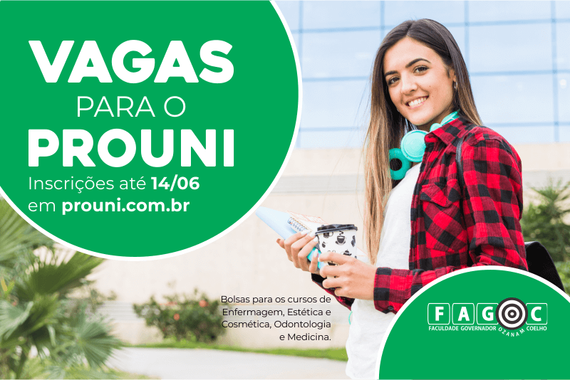 Para o segundo semestre, estão disponíveis 03 bolsas integrais para cada uma das seguintes graduações da Fagoc: Enfermagem, Estética e Cosmética, Medicina e Odontologia.