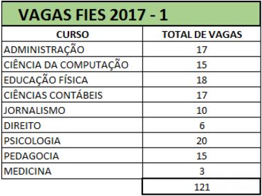 Nesta edição do Fies, a Fagoc oferece um total de 121 bolsas que serão distribuídas para os cursos da instituição. Vale ressaltar que o cálculo para a divisão das vagas é feito pelo Ministério da Educação (Mec).