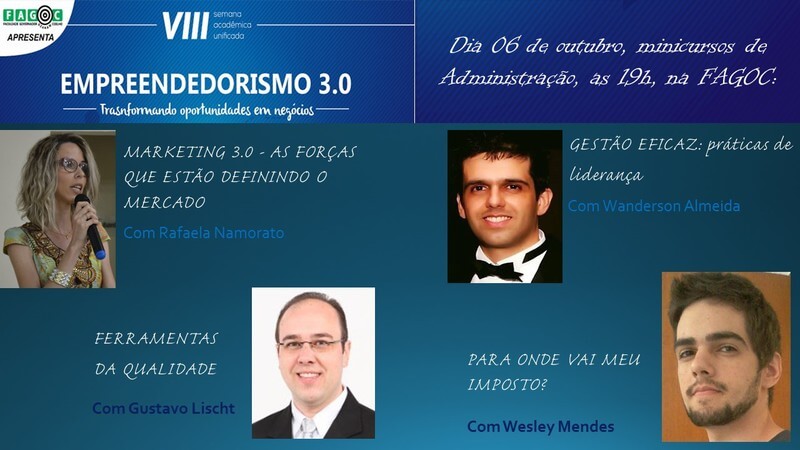 O curso de Administração da Fagoc promove quatro minicursos na área do empreendedorismo, que acontecem simultaneamente na quinta-feira (6), a partir das 19h, no campus da instituição. Confira…