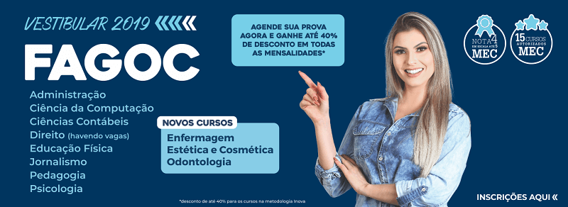 Aqueles que não realizaram o Vestibular da Fagoc, ainda têm chance de ingressar no ensino superior por meio do Vestibular Agendado. Nesta estapa, o candidato escolhe o melhor dia e horário para fazer a prova.